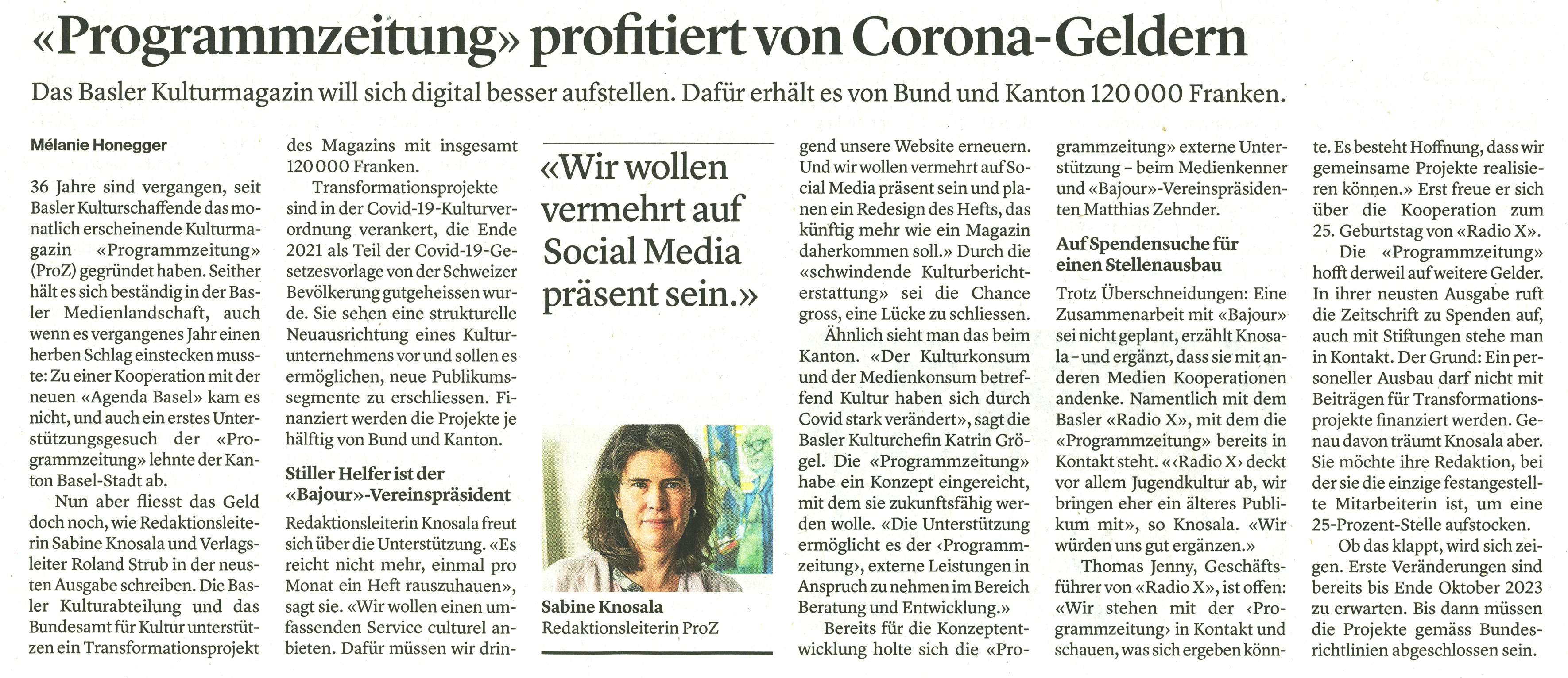 Die bz Basel berichtet, wie sich die ProgrammZeitung für die Zukunft neu aufstellt – digital und im Print.