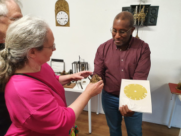 Der Uhrmacher und Restaurator John Joseph gab einen Einblick in die Technik der Exponate, Fotos: Sabine Knosala